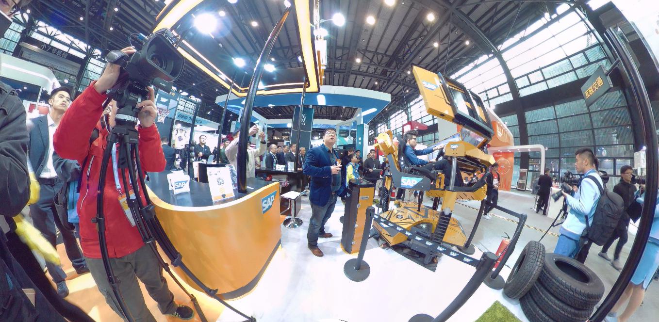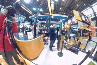 一个平台上驾驶员在开着赛车上下摇摆,左右转动,吸引了大量关注。